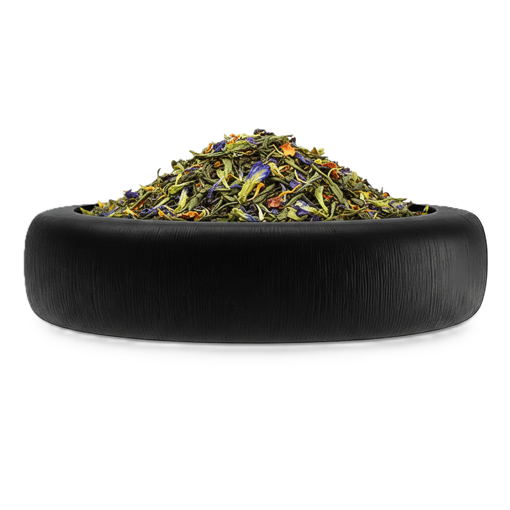 Laissez-vous séduire par l'élégance d'un thé vert de Chine sublimé par la gourmandise de l'amande et la vivacité de la cerise. Agrémenté de pétales de rose et de bleuet, ce mélange floral et fruité offre une dégustation tout en finesse.
