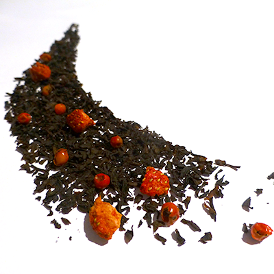 Ingrédients : thé noir du Mozambique 88%, fraise 8% (arôme naturel, morceaux de fraise), baies rose 2%, poivre noir.