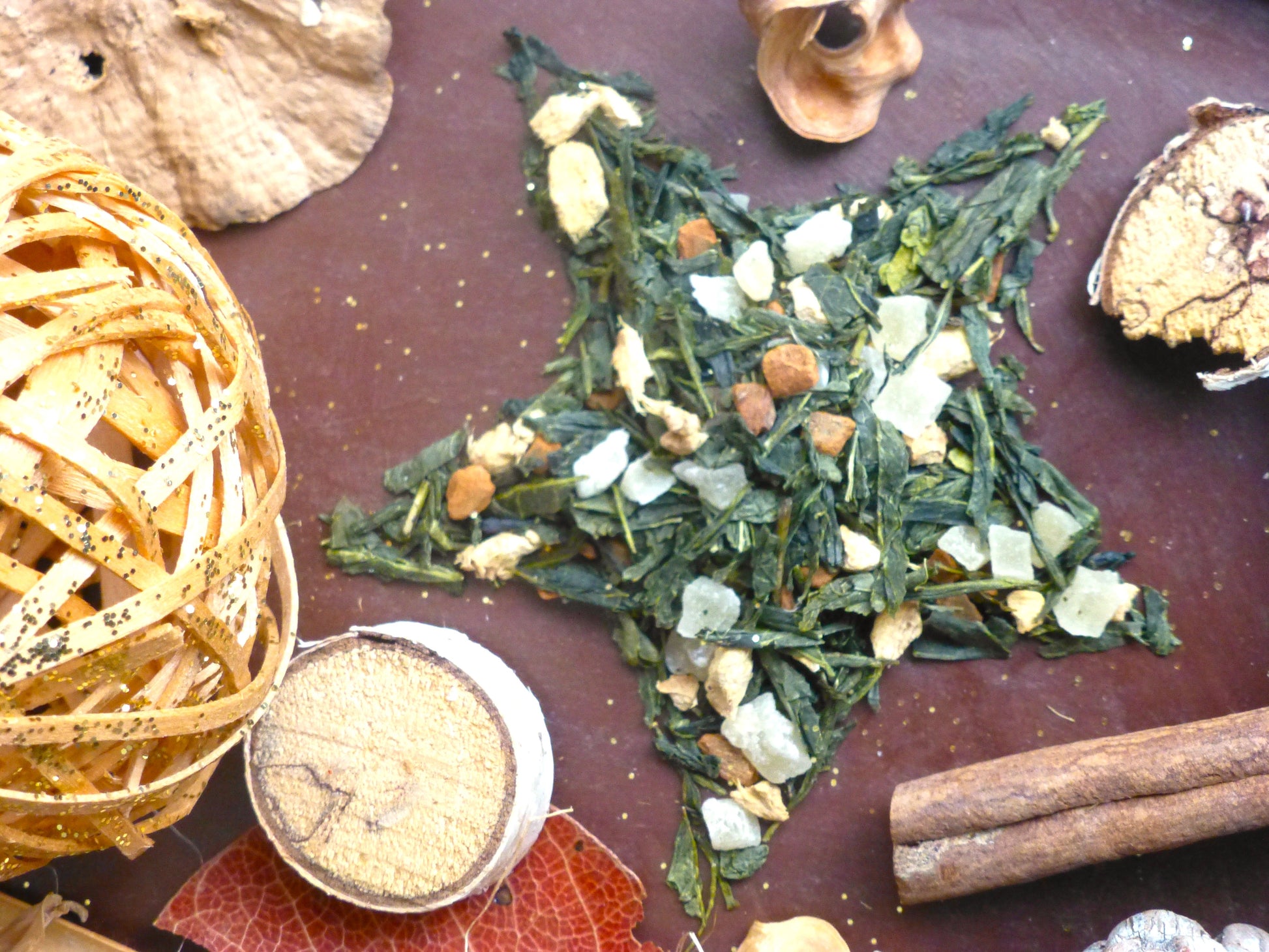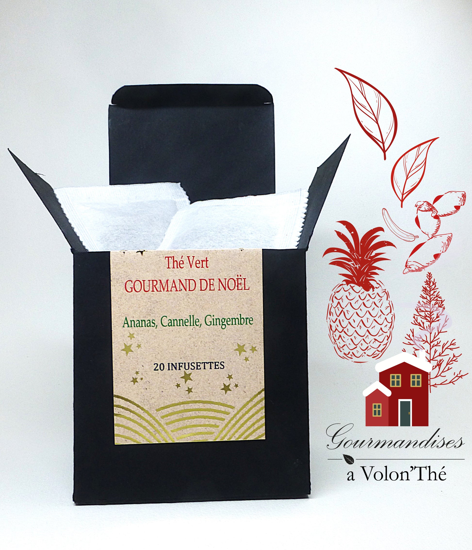 Thé vert de Noël à l'ananas, cannelle et gingembre.